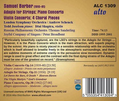 Samuel Barber: Adagio for Strings; Piano Concerto Violin Concerto; 4 Choral Pieces