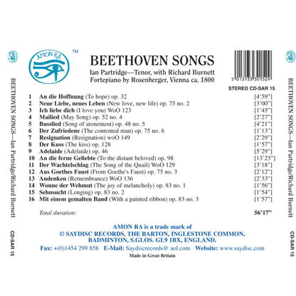 Re-released after a long break, this album shows the renowned tenor, Ian Partridge, at his most mellifluous. The album features Beethoven's only song cycle, An die ferne geliebte, and a selection of his best loved songs including Adelaide, An die Hoffnung and Ich liebe dich. Richard Burnett accompanies on a beautiful Viennese fortepiano of the period.