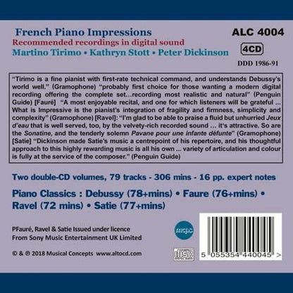 FRENCH PIANO IMPRESSIONS (DEBUSSY; FAURE; RAVEL) - STOTT, TIRIMO, DICKINSON (4 CDS)