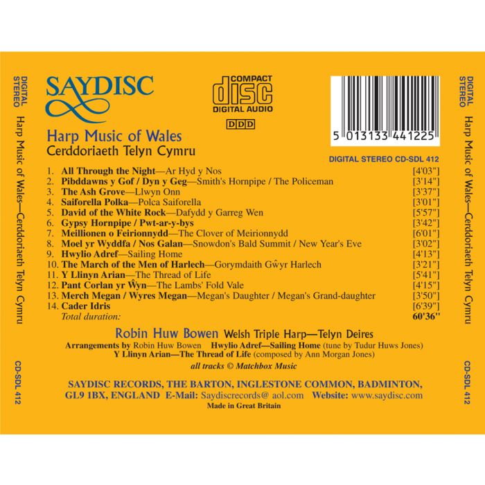 The glorious sound of the Welsh triple harp in the hands of Robin Huw Bowen, the world's leading exponent. Where beautiful slow airs are contrasted with lively dances.
