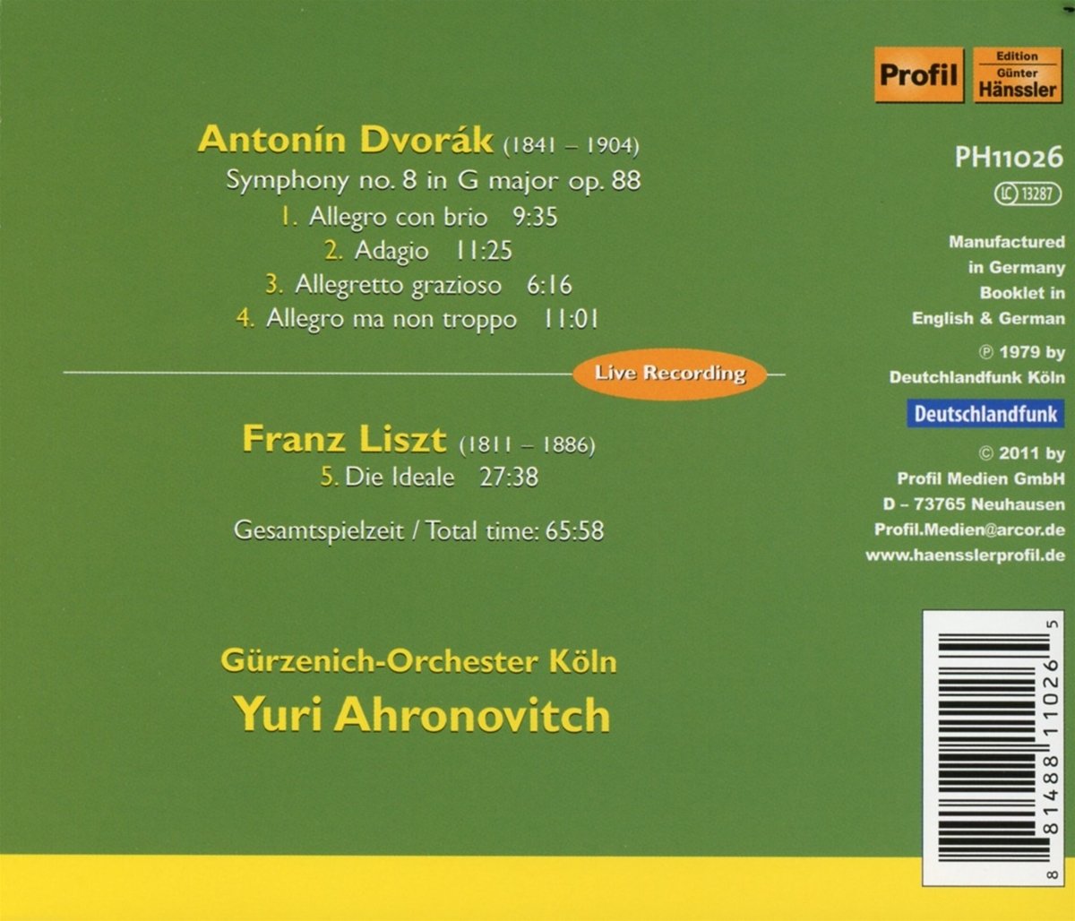 Liszt: Die Ideale; Dvorak: Symphony No. 8 - Gürzenich Orchester, Yuri Ahronovitch