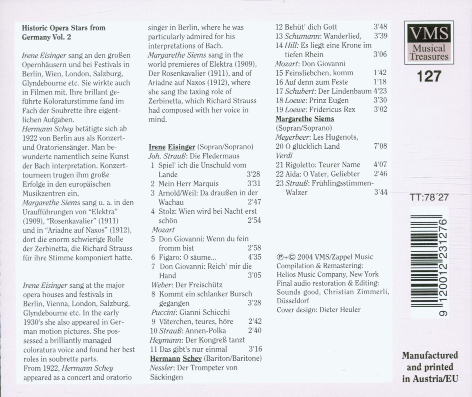 Historic Opera Stars from Germany, Vol. 2 - Eisinger/Schey/Siems