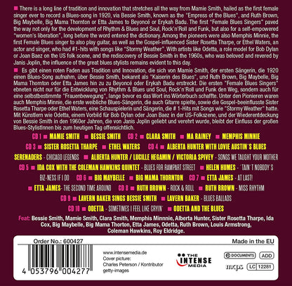 Mamie Smith is hailed as the first female singer ever to record a Blues-song in 1920, nearly a century ago. Singers like her and her successful colleagues Bessie and Clara Smith (no relation) of the 1920s and Beyoncé today are seemingly worlds apart, but the latter would be almost unthinkable without the great singers, who are gathered on these 10 CDs. Anyone doubting that should watch the movie "Cadillac Records", in which Beyoncé plays (and sings!) the young Etta James so convincingly, that one can’t but wish for the superstar to eventually record a blues tribute album of her own.