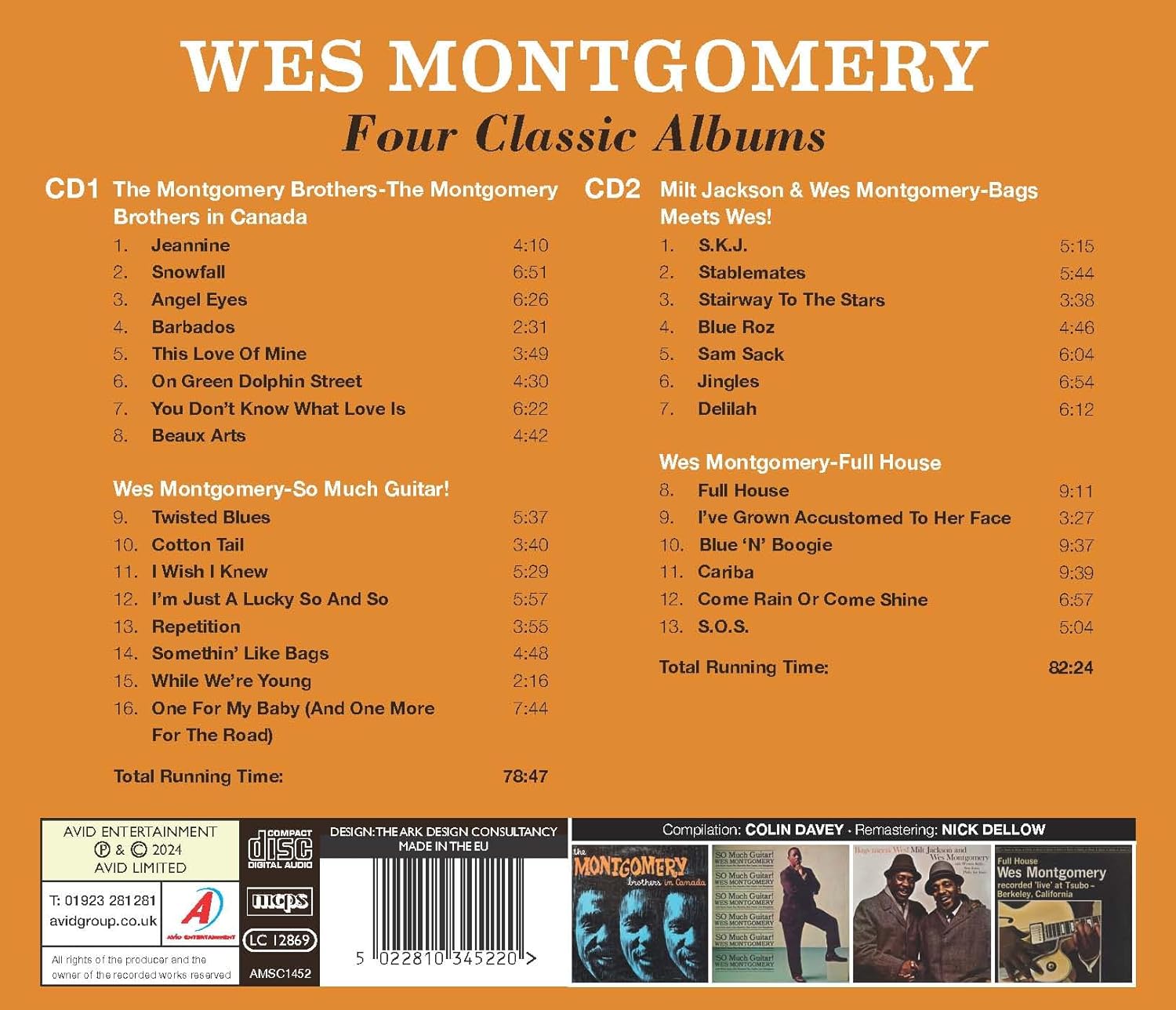 AVID Jazz continues with its Four Classic Album series with a re-mastered 2CD second release from Wes Montgomery, complete with original artwork, liner notes and personnel details.