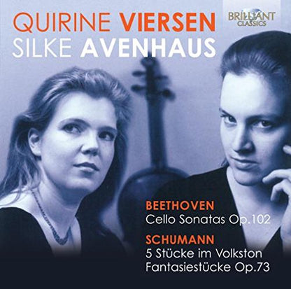 Quirine Viersen, one of Holland’s foremost cellists, and Silke Avenhaus are musical partners already for many years, forming a close unity of musical thought and emotion. This recording dates from the beginning of their partnership and offers passionate readings of Beethoven’s two late Cello Sonatas Op. 102, combined with the deeply romantic world of Schumann, in his Phantasiestücke and the fairylike Stücke im Volkston.