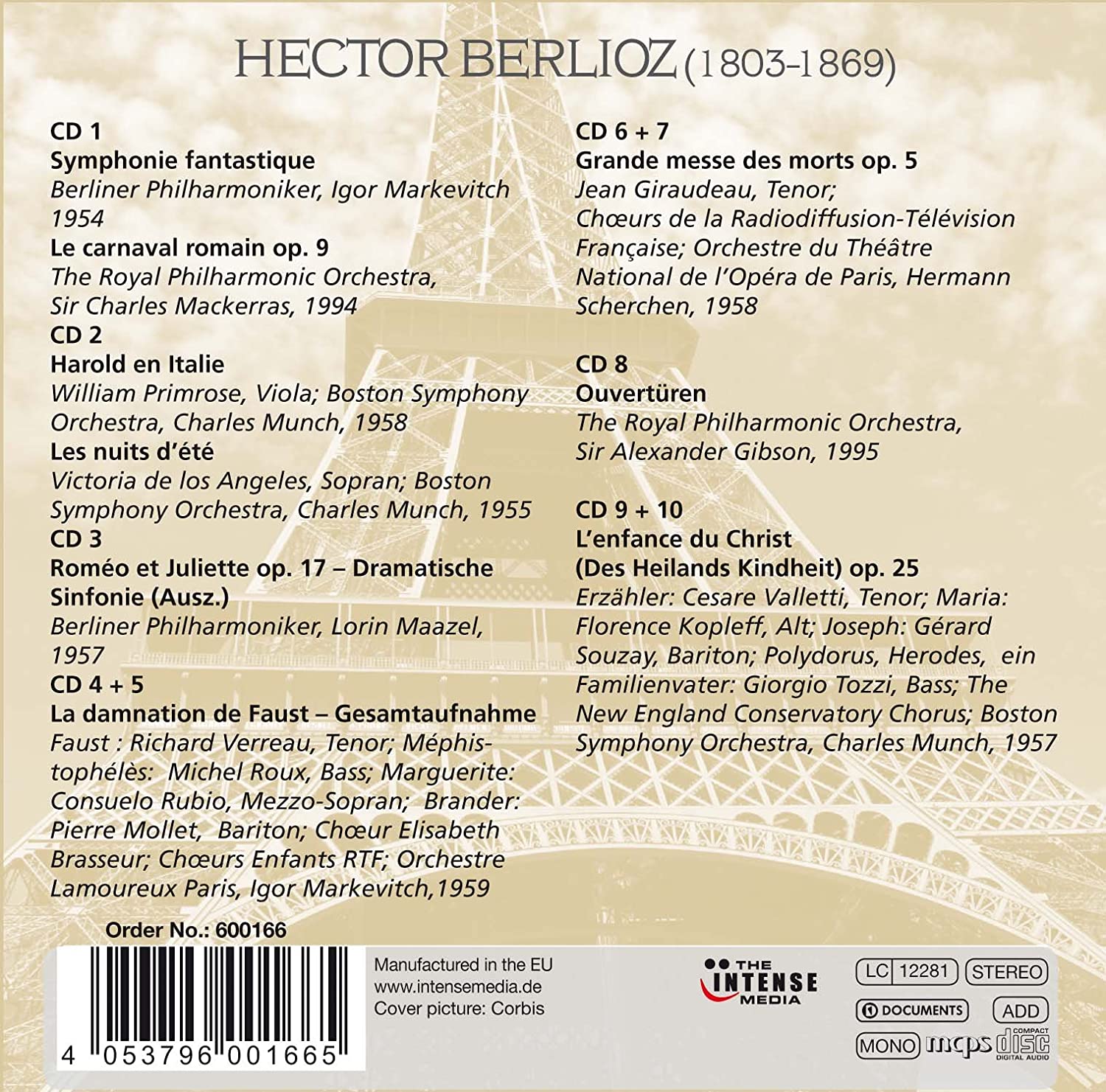 This 10-CD set presents a wide-ranging collection of the works of the 19th century French composer Hector Berlioz. Included here are his two great purely orchestral pieces, Symphonie Fantastique and Harold in Italy, alongside music from the dramatic works Romeo and Juliet and The Damnation of Faust. Also featured are his monumental choral requiem Grande Messe des Morts, the song cycle Les Nuits d'Été, and a selection of some of his best known overtures.