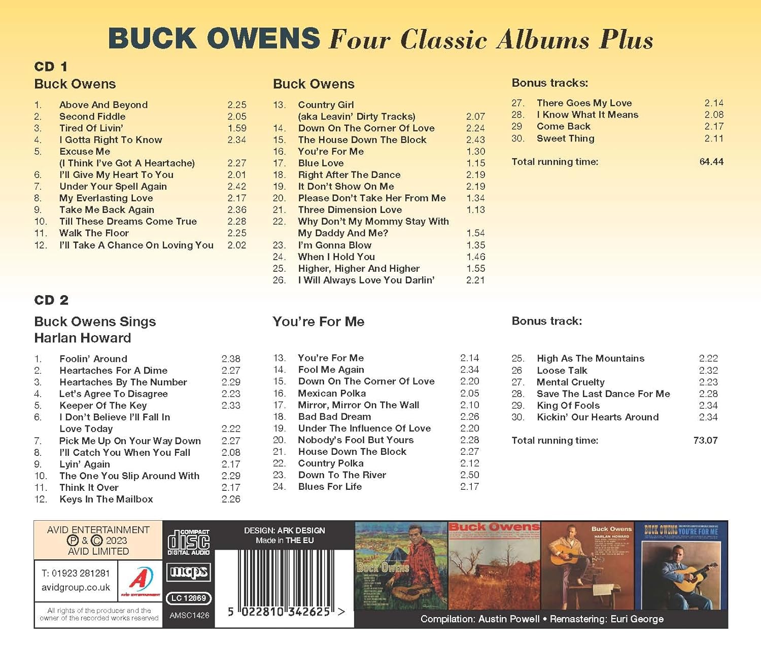 AVID Country presents the latest release in our Four Classic Albums Plus series with a 2CD release from Buck Owens, complete with original artwork, liner notes, personnel details and 10 Bonus Tracks.