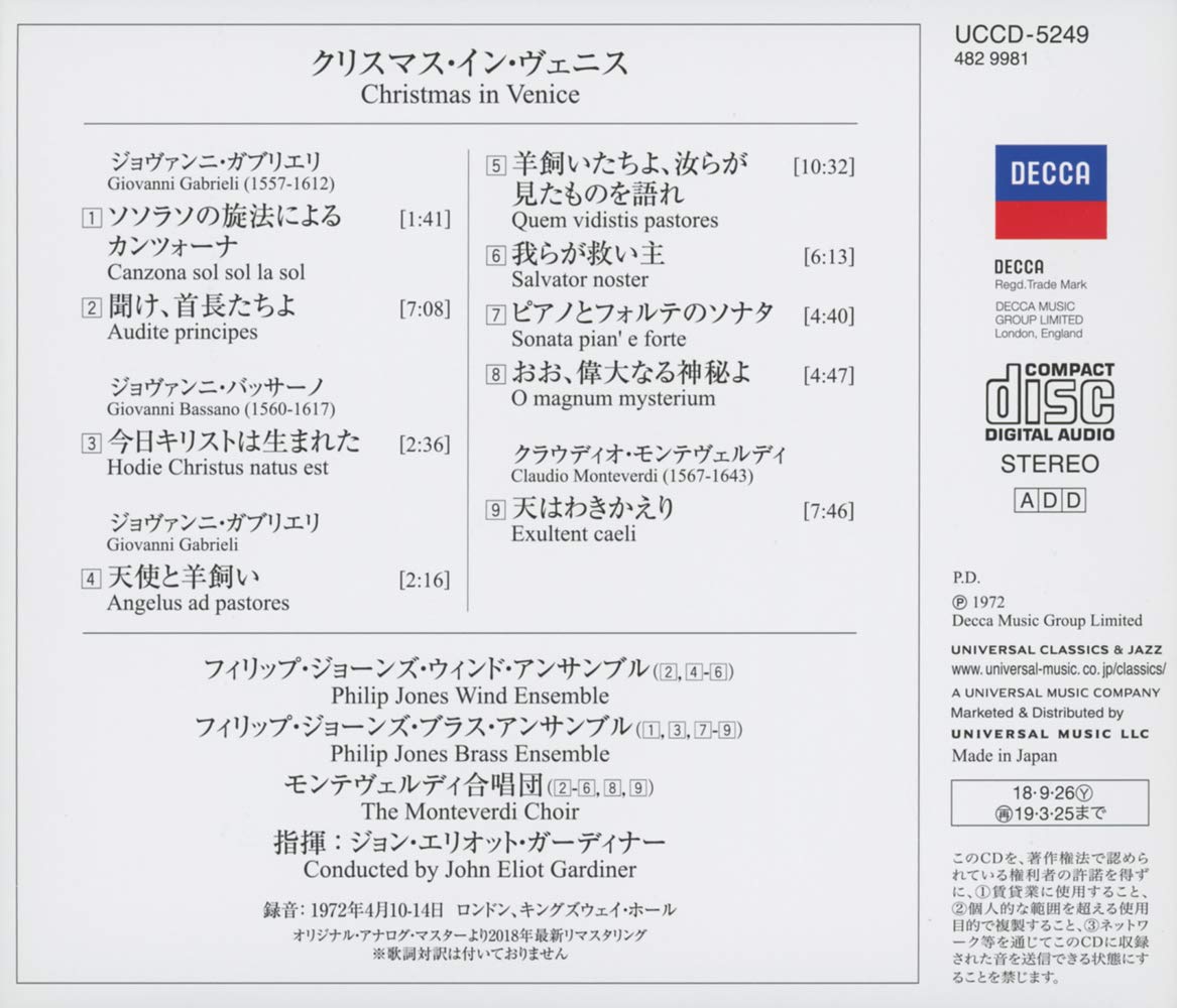 CHRISTMAS IN VENICE (SUPER HIGH DEFINITION JAPANESE PRESSING): PHILIP JONES BRASS ENSEMBLE, JOHN ELIOT GARDINER