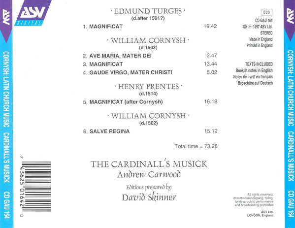 CORNYSH: Latin Church Music; Turges & Prentes: Magnificat - The Cardinall's Musick