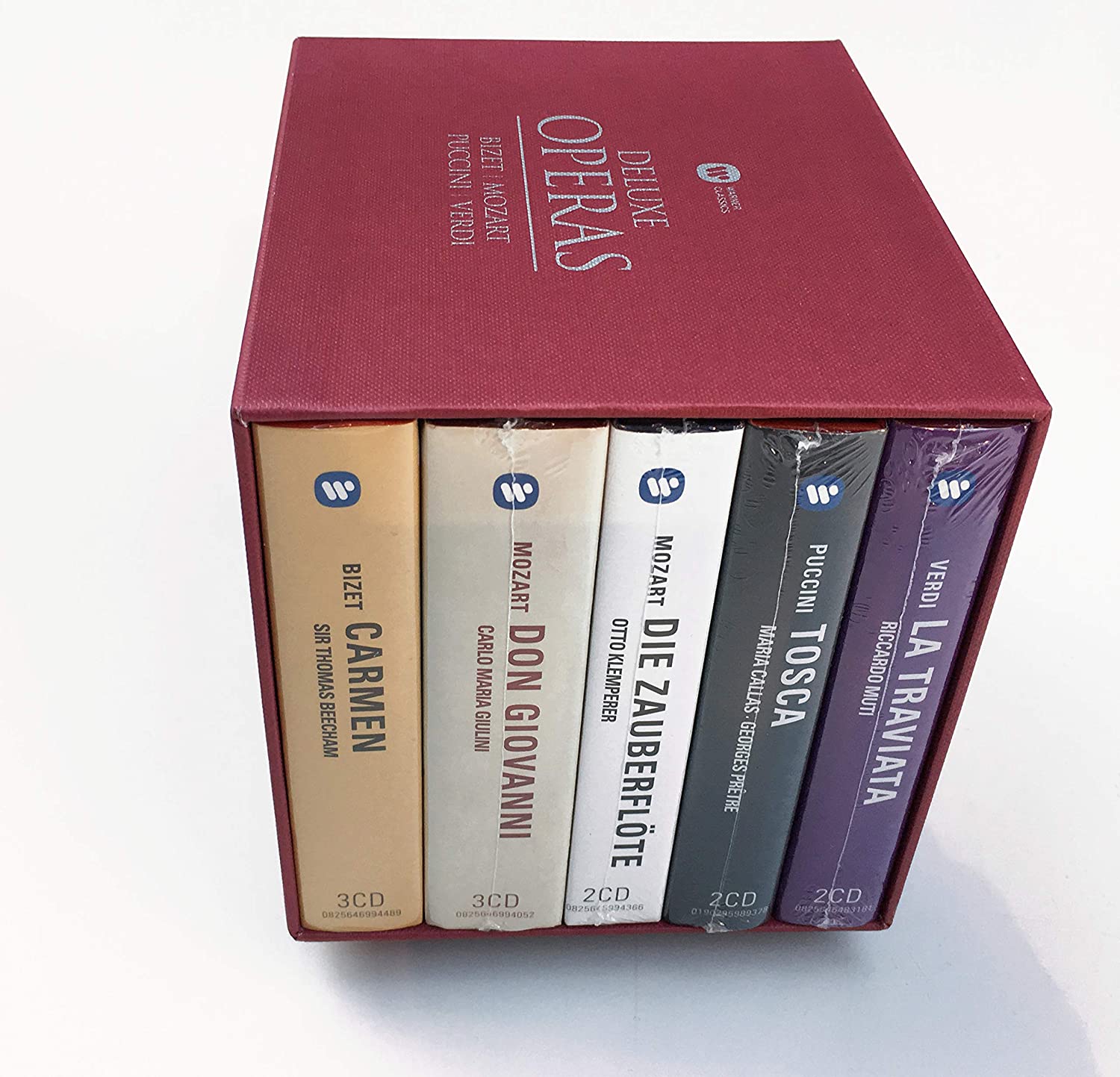 These five Legendary Opera Recordings in their recent deluxe version (from 2016) are put together in a deluxe rigid slipcase.