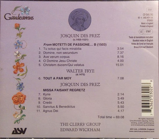 DES PREZ: Missa Faisant Regretz; Motetti De Passione...B - Clerks' Group