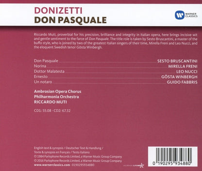 Donizetti: Don Pasquale - Bruscantini, Freni, Winbergh, Nucci, Ambrosian Opera Chorus, Philharmonia Orchestra, Riccardo Muti (2 CDs)