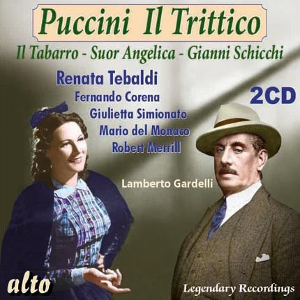 “Renata Tebaldi brings off a tour de force in her assumption of all three soprano roles…. She gives us some beautiful singing in the passage about the charms of Paris (and) excellent in Suor Angelica, singing with touching simplicity in the scene with the terrible Aunt (superb from Simionato)…. Which reminds me to add a word of praise for the lesser nuns and novices that make all the earlier part of Suor Angelica so uncommonly enjoyable… In Gianni Schicchi small parts are again first rate” (Gramophone)