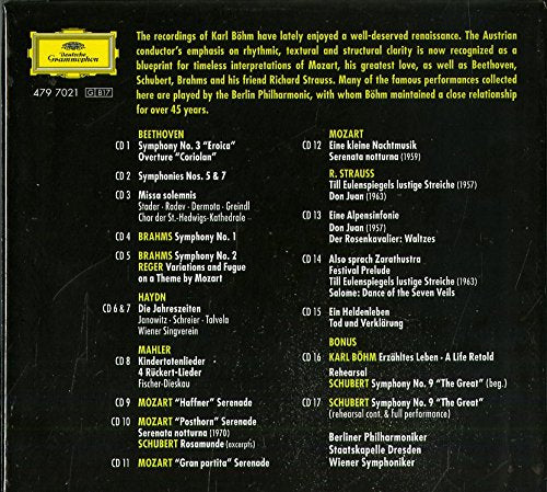• PACKAGING: A lift-off box with booklet including new liner notes by Berliner Philharmoniker intimus Helge Grünewald and rare Böhm photographs