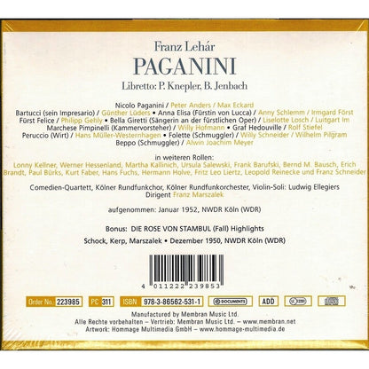 Franz Marczalek, Peter Anders (Paganini), Günther Lüders (Bartucci) Anny Schlemm (Anna Elisa), Philpp Gehly (Fürst Felice), Liselotte Lösch (Bella), Willi Hofmann (Pimpinelli), Rolf Stiefel (Hedouville), Hans Müller Westernhagen (Peruccio)