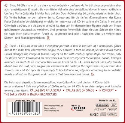 These 14 CDs present a portrait of the legendary soprano Mario Callas, and include several rarely heard live performances from opera houses around the world, as well as recordings from radio broadcasts.
