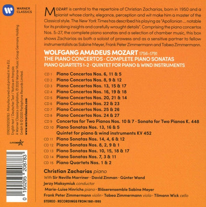 Mozart is central to the repertoire of Christian Zacharias, born in 1950 and a pianist whose clarity, elegance, perception and wit make him a master of the Classical style. The New York Times has described his playing as "Apollonian... notable for it's probing insights and carefully wrought details". Comprising the piano concertos Nos 5-27, the complete piano sonatas and a selection of chamber music, this 15CD box shows Zacharias as both a soloist of prowess and as a sensitive partner to such fellow instrumentalists as Sabine Meyer, Frank Peter Zimmermann and Tabea Zimmermann.