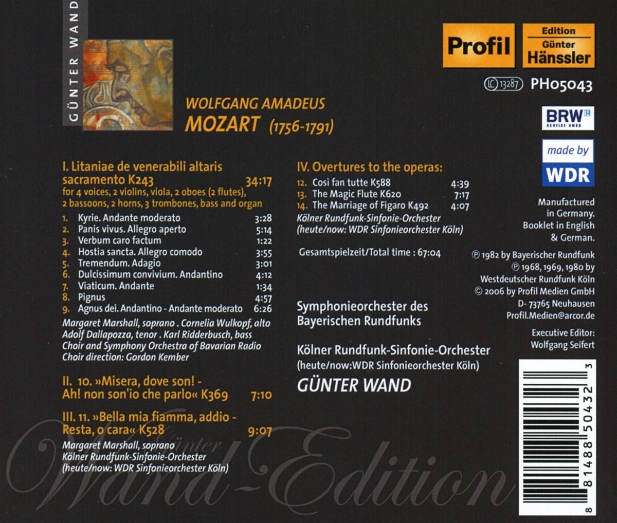 Gunter Wand-Edition: Mozart: Litaniae De Venerabili Altaris Sacramento K. 243, Arias and Overtures