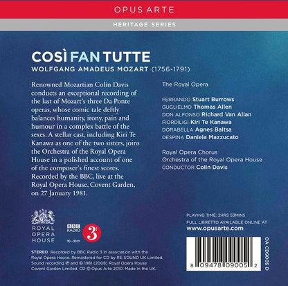 MOZART: Cosi Fan Tutte - teKanawa, Baltsa, Allen, Van Allan, Burrows, Colin Davis, Royal Opera House Orchestra and Chorus (3 CDs)