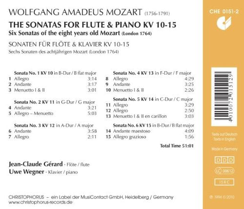 MOZART: The Sonatas for Flute and Piano, K. 10-15 - Wegner, Gérard
