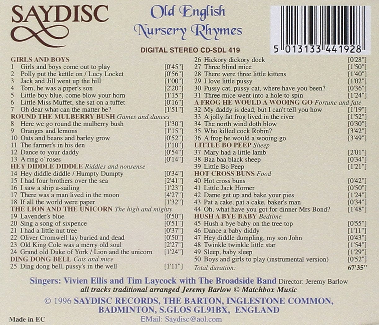 A real delight to young and old. Vivien Ellis and Tim Laycock sing 52 favourites in traditional style with The Broadside Band.