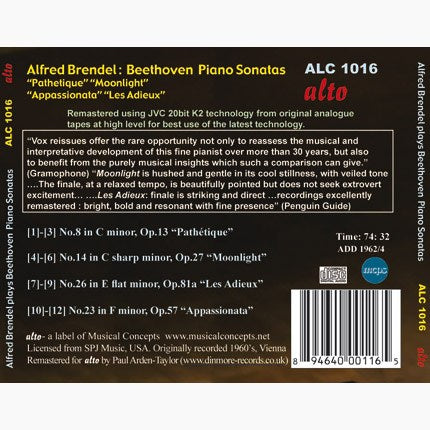 “Moonlight is hushed and gentle in its cool stillness, with veiled tone…. The finale, at a relaxed tempo, is beautifully pointed but does not seek extrovert excitement…. Les Adieux: finale is striking and direct… recordings excellently remastered: bright, bold and resonant with fine presence.” — Penguin Guide