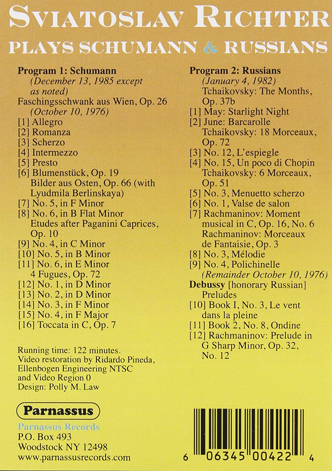 Few videos of Richter have been issued, and most of those available show Richter in his later years. This release is the only the second full-length program of Richter from the 1970s and ‘80s (after PDVD 1201) issued on DVD.