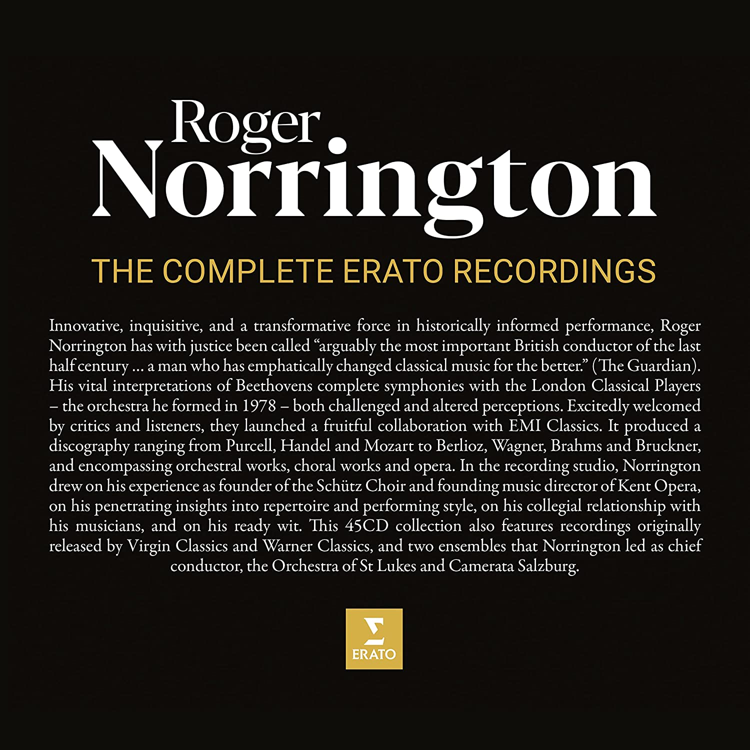Sir Roger Norrington: The Complete Erato Recordings (45 CDs) brings together all the recordings that the British conductor Sir Roger Norrington (b. 1934) made for EMI Classics, Virgin and Warner Classics Classics over the years from 1986 and 2004.