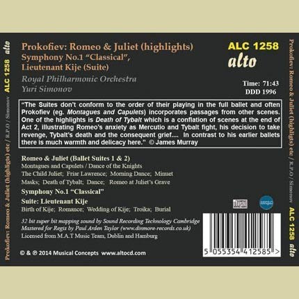 PROKOFIEV: ROMEO & JULIET SUITES 1 & 2; SYMPHONY NO. 1, LTE. KIJE - SIMONOV, ROYAL PHILHARMONIC