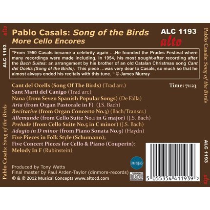 PABLO CASALS: SONG OF THE BIRDS - MORE CELLO ENCORES