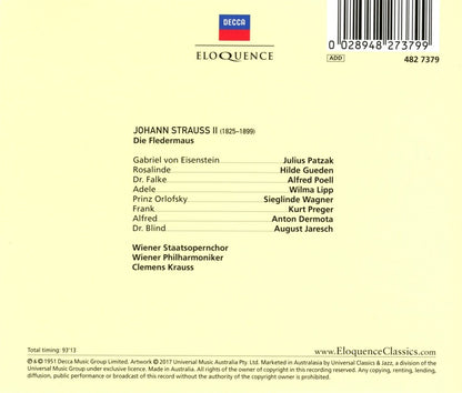 Still considered by many to be the finest recording ever made of the jewel in Viennese operetta: ‘Die Fledermaus’ was one of a trio of Strauss-family recordings made by Clemens Krauss for Decca in the early 1950s. Like ‘Der Zigeunerbaron’ (482 7371) and his New Year Concerts (482 7364), it is now reissued by Eloquence, in a new remastering and with fresh editorial retrospectives on the special chemistry between composer, conductor and orchestra.