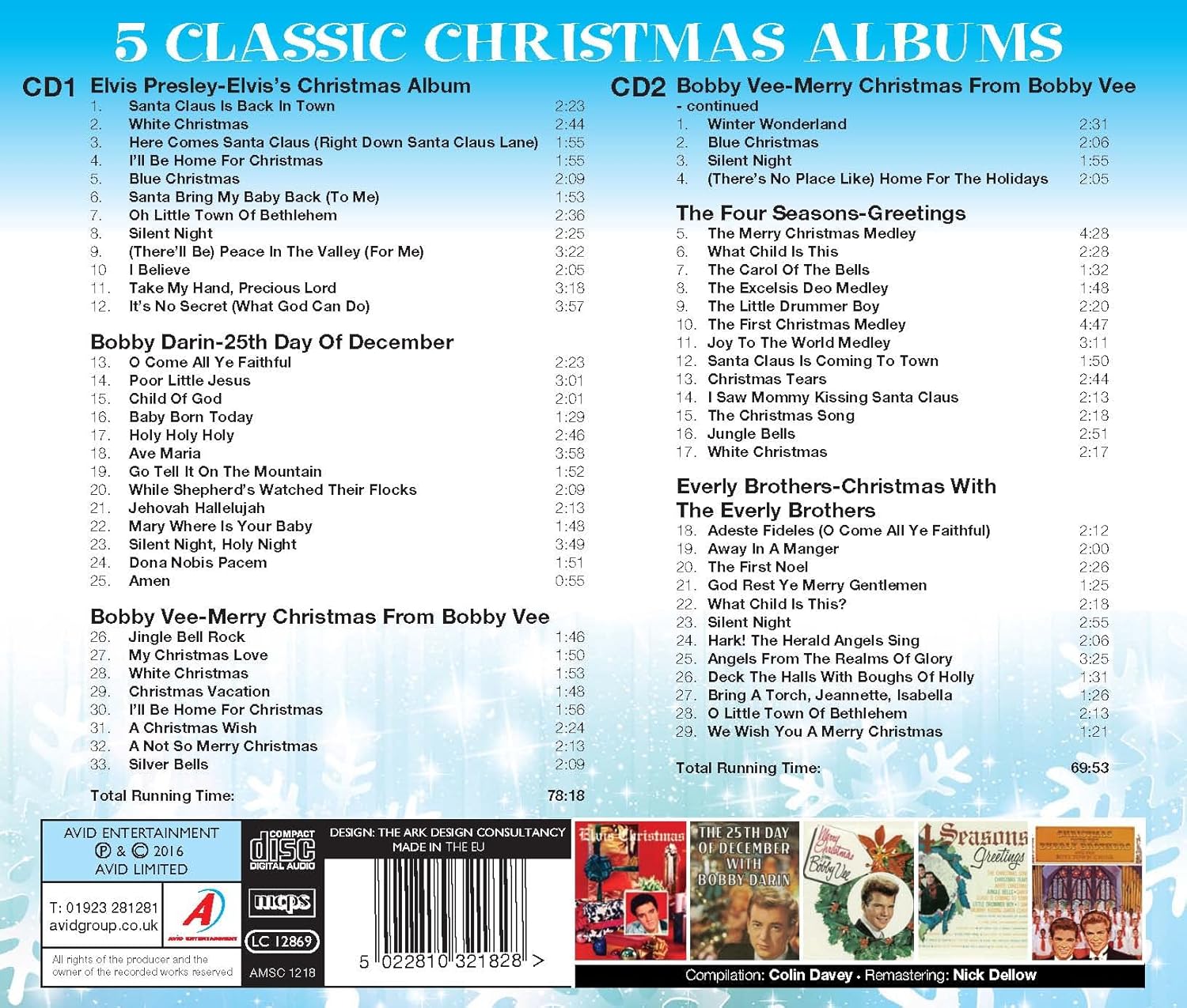 Five Classic Christmas Albums (Elvis’s Christmas Album / The 25th Day Of December / Merry Christmas From Bobby Vee / The Four Seasons Greetings / Christmas With The Everly Brothers) (2CD)