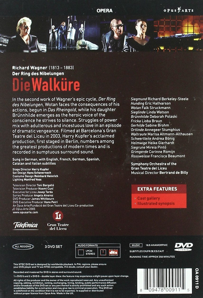 In the second work of Wagner's epic cycle, Der Ring des Nibelungen, Wotan faces the consequences of his actions, begun in Das Rheingold, while his daughter Brünnhilde emerges as the heroic voice of the conscience he strives to silence. Struggles of power mix with adulterous and incestuous love in an episode of dramatic vengeance. Filmed at Barcelona's Gran Teatre del Liceu in 2003, Harry Kupfer's acclaimed production, first staged in Berlin, numbers among the greatest productions of modern times.