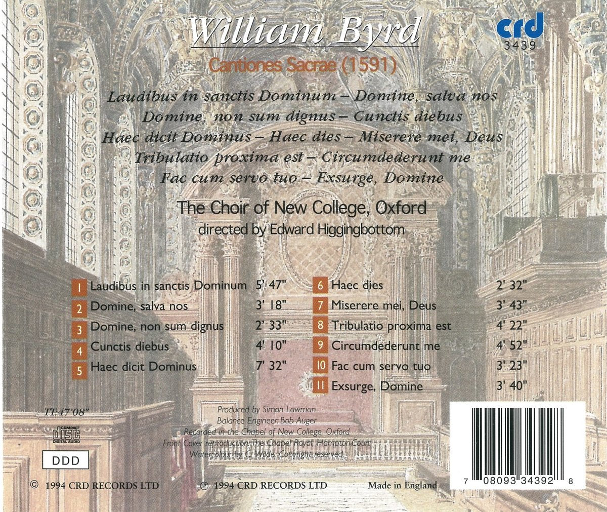 BYRD: CANTIONES SACRAE - CHOIR OF NEW COLLEGE OXFORD, EDWARD HIGGINBOTTOM